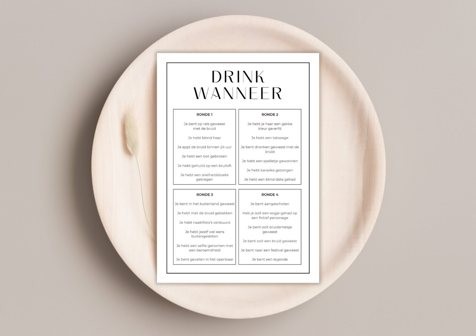 Ben je creatief en vind je het leuk om je eigen spel te ontwerpen? Dan kun je het Bachelorette Party spel ook bij ons kopen als Canva-sjabloon. Klik hier om te bestellen.