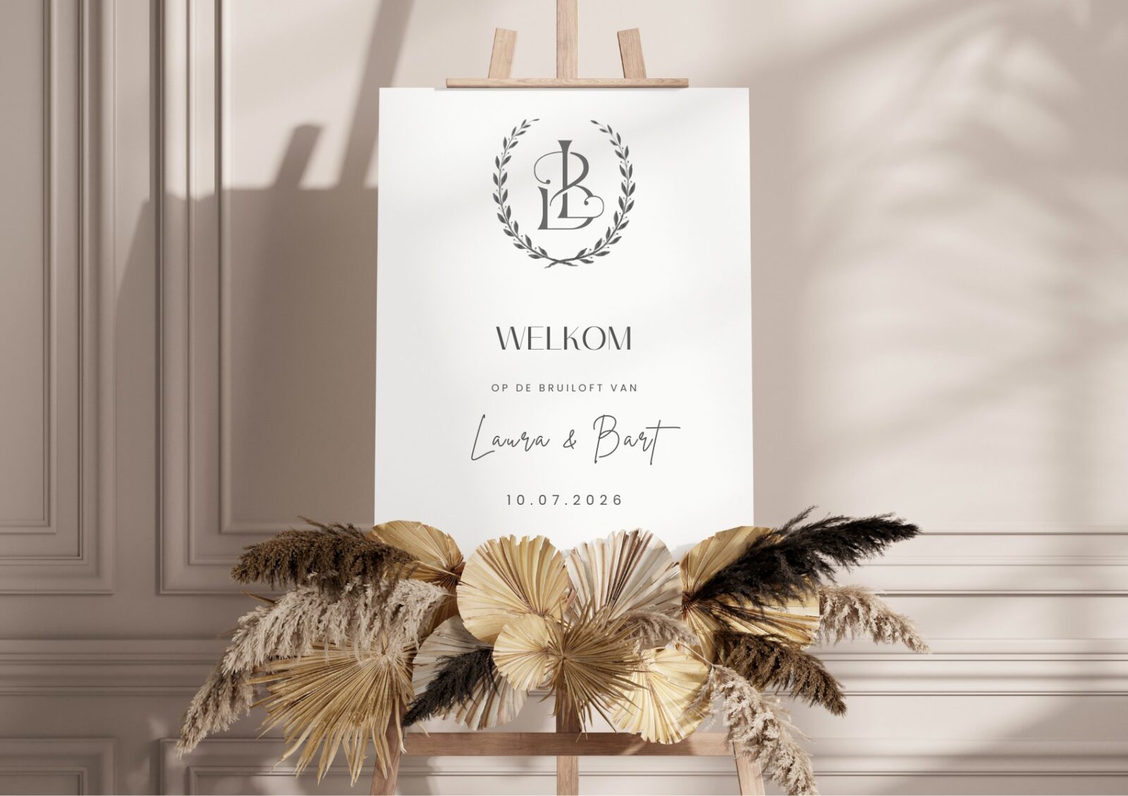 Een op maat gemaakt bruiloft logo maakt je dag niet alleen specialer, maar ook echt persoonlijk. Het is een uniek symbool dat bij jullie hoort en zorgt ervoor dat jullie bruiloft net dat beetje extra flair geeft.  Of het nu op gepersonaliseerde items zoals servies en bedankjes staat, of op je uitnodiging of website, je logo blijft een mooie herinnering.
