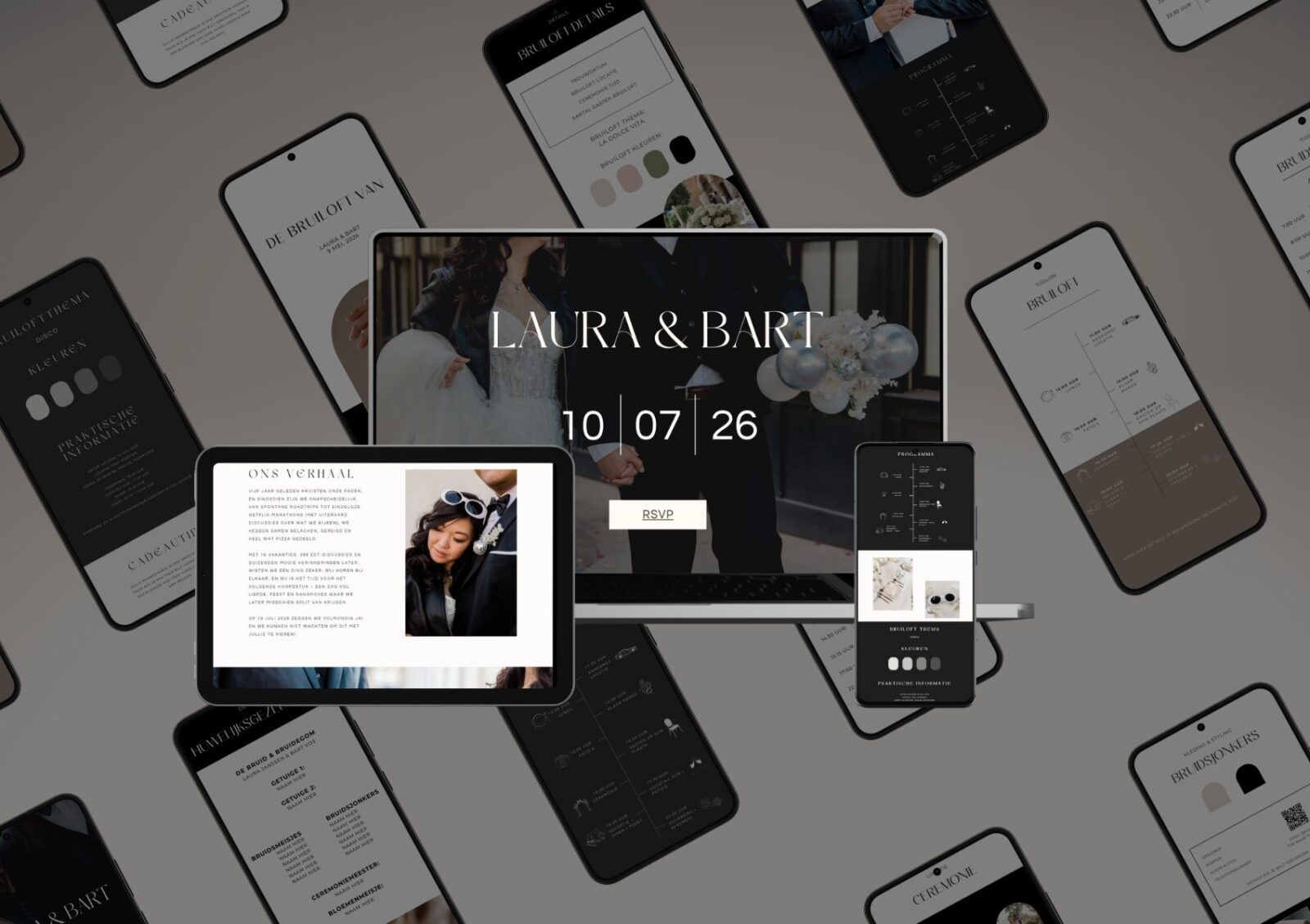 Homepage / Aankondigingspagina – Laat jullie gasten meteen de sfeer van jullie bruiloft proeven.