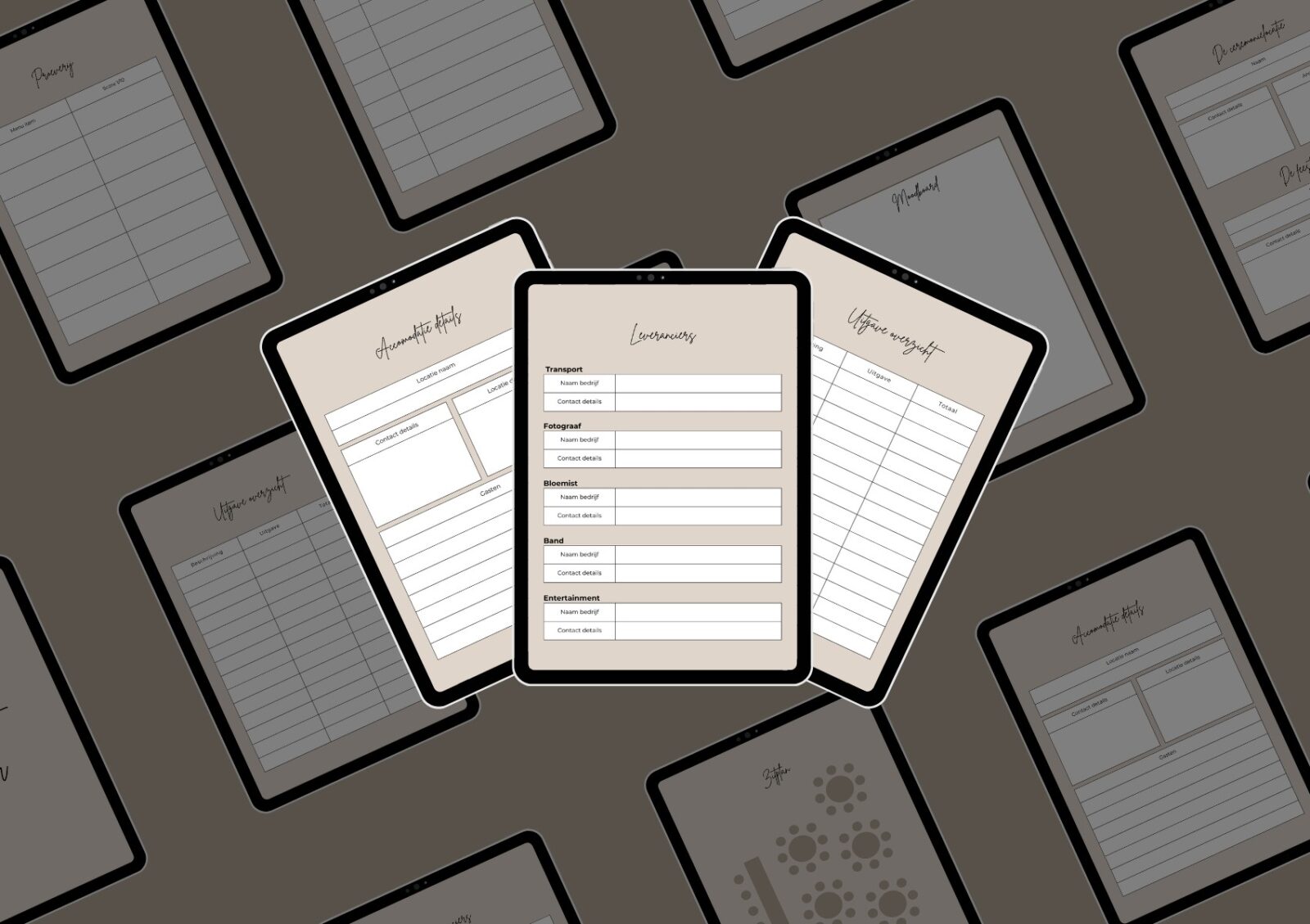 De Bruiloftplanner bevat alles wat je nodig hebt om je bruiloft tot in de puntjes te regelen! Het maakt het plannen eenvoudig en overzichtelijk, zodat jij je kunt richten op de mooie momenten en niet hoeft te stressen over de kleine details.
