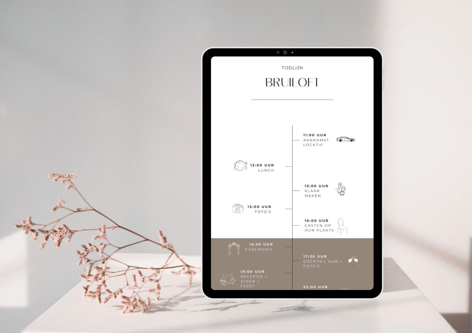 Gedetailleerd schema trouwdag – Een nauwkeurige planning zodat iedereen precies weet wat er te gebeuren staat.